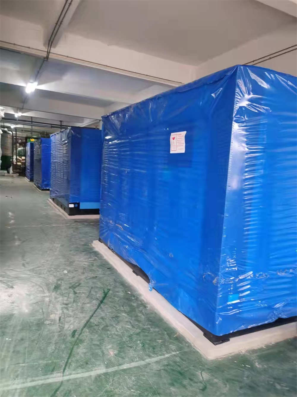 某光電行業優耐特斯空壓機到貨現場